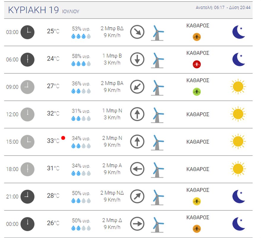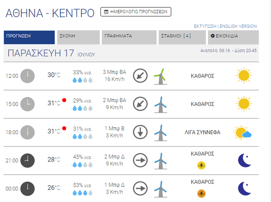 Ο καιρός σήμερα στην Αθήνα είναι ηλιόλουστος, με τη θερμοκρασία να φτάνει έως και τους 32 βαθμούς Κελσίου. Το Σαββατοκύριακο που έρχεται δεν αναμένονται διαφορές στη θερμοκρασία, με τον υδράργυρο να μην ξεπερνά τους 33 βαθμούς Κελσίου.