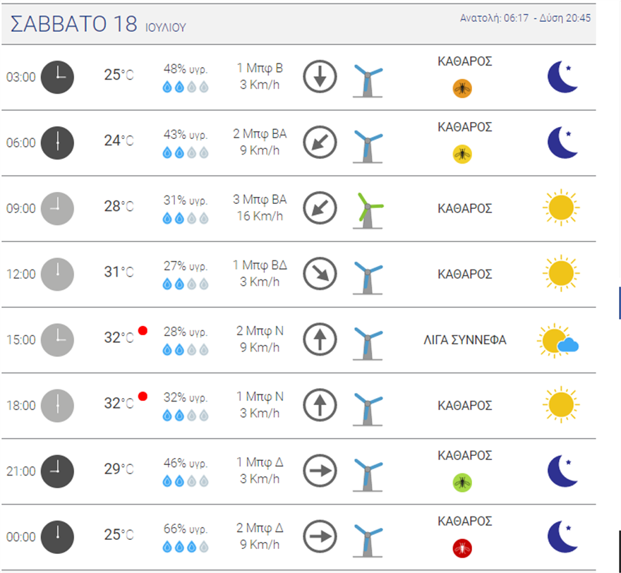 Συγκεκριμένα, για σήμερα Παρασκευή, προβλέπεται ηλιοφάνεια με λίγες νεφώσεις πρόσκαιρα αυξημένες τις θερμές ώρες της ημέρας περιμένουμε σήμερα Παρασκευή στην Αθήνα. Η θερμοκρασία θα κυμανθεί από 22 έως 32 βαθμούς Κελσίου. Οι άνεμοι θα πνέουν από βόρειες διευθύνσεις ασθενείς έως σχεδόν μέτριοι 3-4 μποφόρ και πρόσκαιρα στο Σαρωνικό από νότιες διευθύνσεις με την ίδια ένταση.