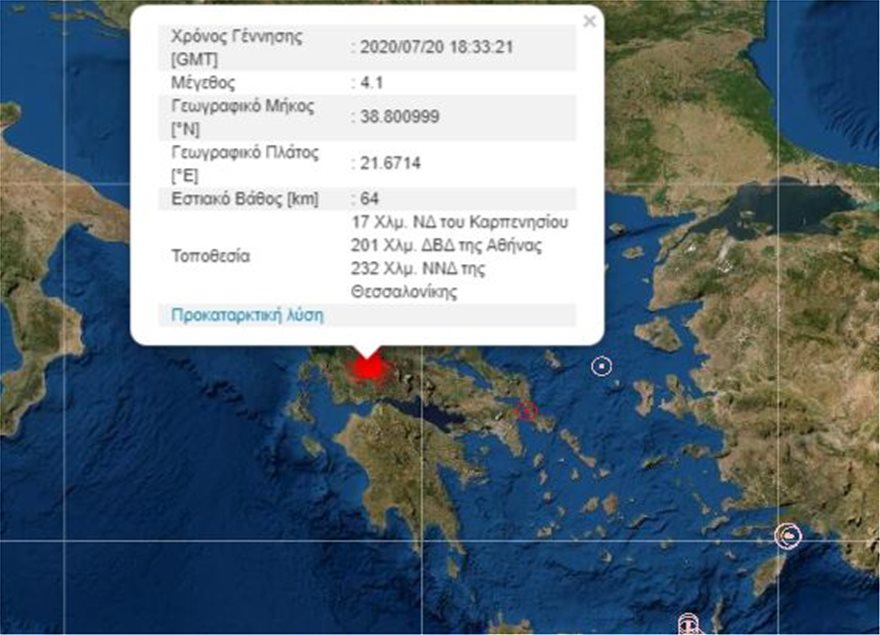 Το επίκεντρο του σεισμού υπολογίζεται στα 17 χιλιόμετρα νοτιοδυτικά του Καρπενησίου και είχε εστιακό βάθος 60 χιλιόμετρα.