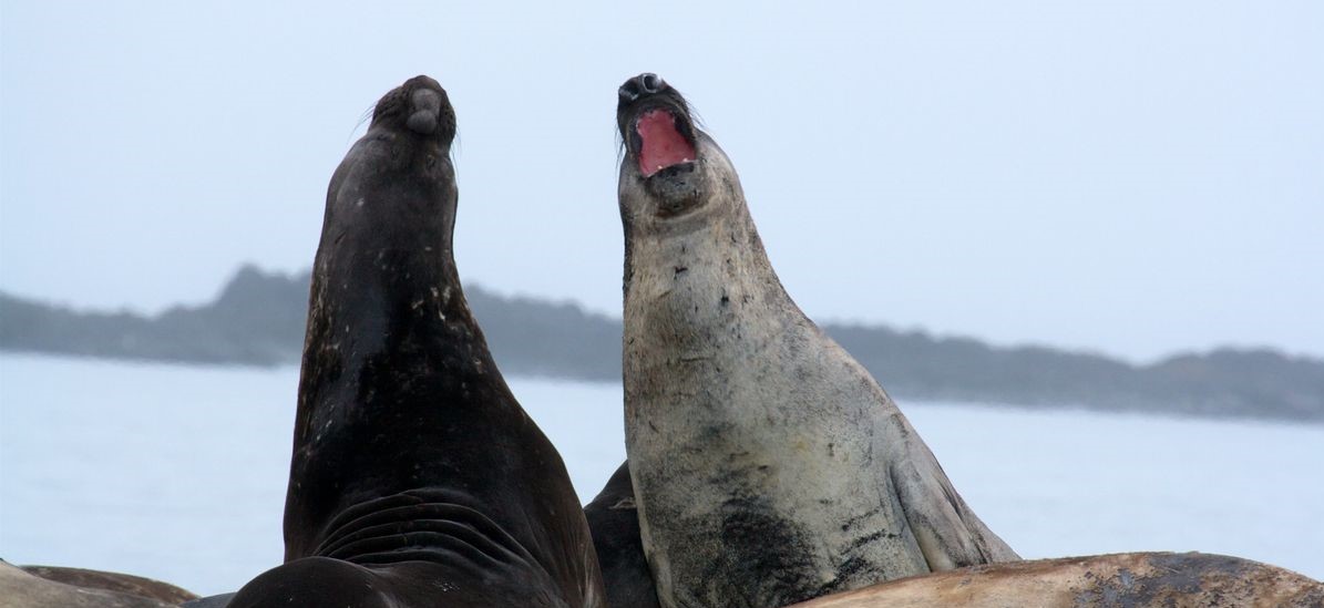 Σύμφωνα με τον φωτογράφο Έβαν Γουίλσον, αυτοί οι θαλάσσιοι ελέφαντες εκπαιδεύονται για να μπορούν να υπερασπιστούν τα θηλυκά όταν μεγαλώσουν.