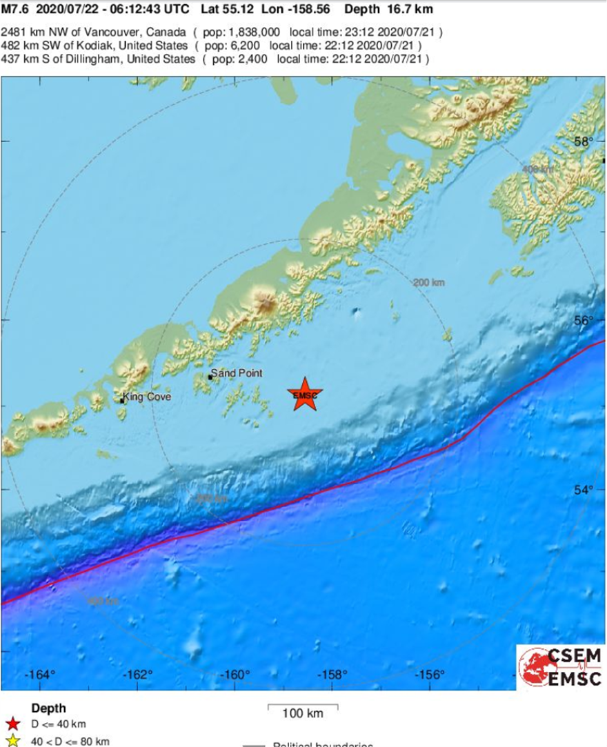 Σύμφωνα με διεθνή μέσα μαζικής ενημέρωσης, στην πολιτεία των ΗΠΑ ήχησαν σειρήνες, ενώ υπάρχει προειδοποίηση για τσουνάμι. Η προειδοποίηση για τσουνάμι αφορά στα νότια της Γης της Αλάσκας.