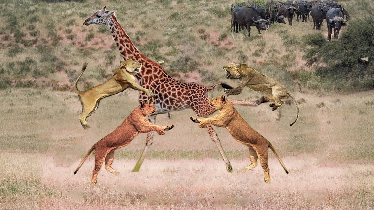 Λιοντάρια ορμούν σε καμηλοπάρδαλη (βίντεο)