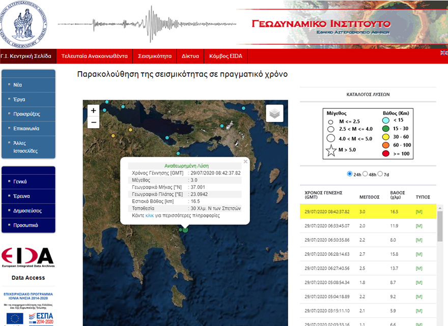 Συγκεκριμένα ο σεισμός, έλαβε χώρα 30 χιλιόμετρα νότια των Σπετσών.