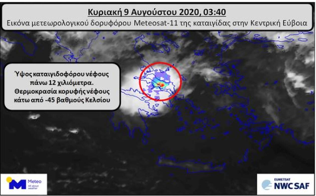 Όπως προκύπτει από αυτές, μετά από επεξεργασία με εξειδικευμένους αλγορίθμους από το Εθνικό Αστεροσκοπείο Αθηνών / meteo.gr, τα ύψη των νεφών ξεπέρασαν τα 12 χιλιόμετρα, ενώ οι κορυφές τους είχαν θερμοκρασίες κάτω από -45 oC.