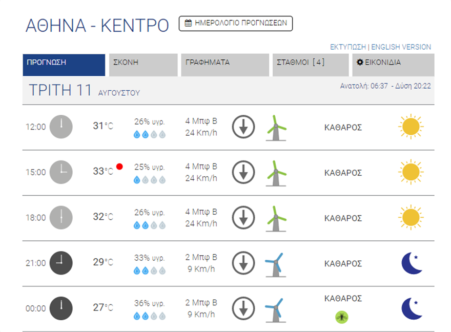 Η θερμοκρασία στο κέντρο των Αθηνών θα κυμανθεί από 23 έως 33 βαθμούς.