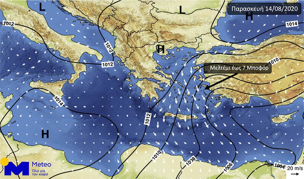 Παράλληλα το μελτέμι στο Αιγαίο Πέλαγος θα συνεχίσει να πνέει ενισχυμένο, φτάνοντας τοπικά τα 7 Μποφόρ στις Κυκλάδες και τα Δωδεκάνησα.