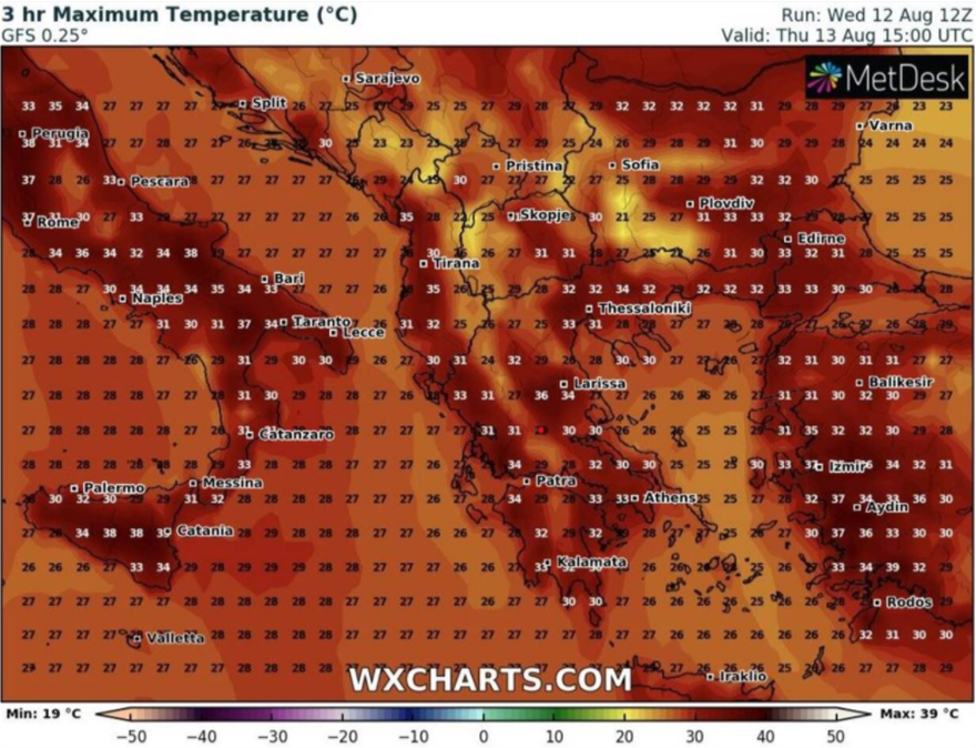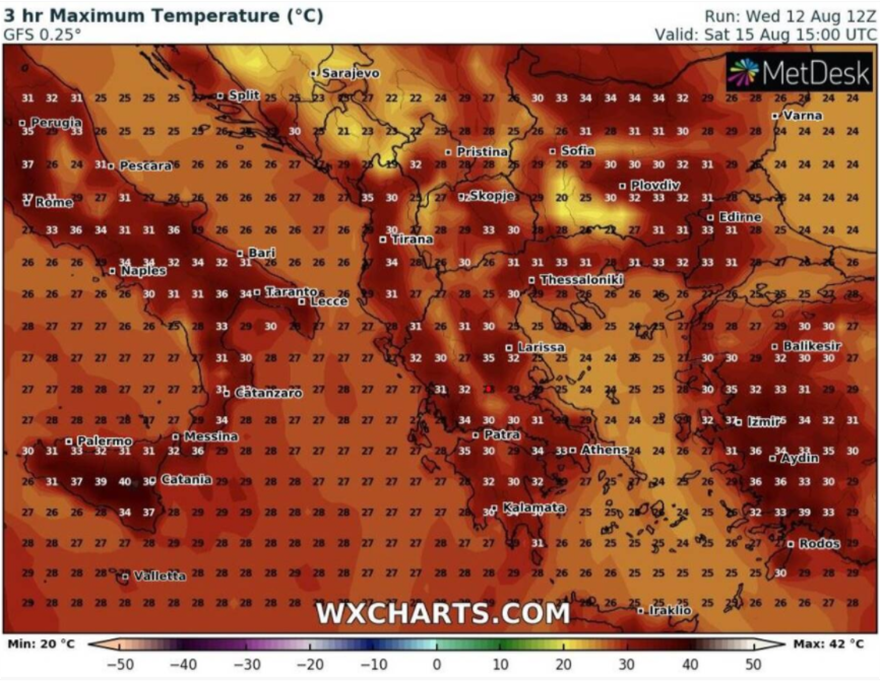 Αναλυτικοί χάρτες με τις θερμοκρασίες μέχρι και τον Δεκαπενταύγουστο