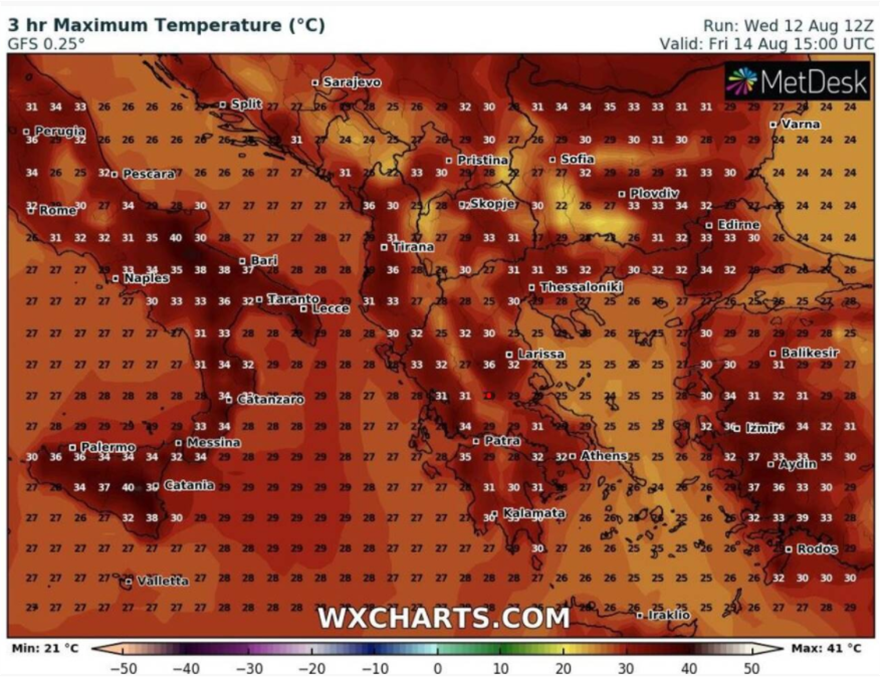 Αναλυτικοί χάρτες με τις θερμοκρασίες μέχρι και τον Δεκαπενταύγουστο