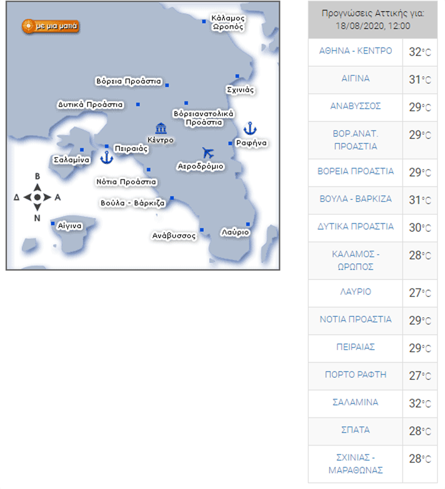 Ο καιρός σήμερα στην Αθήνα με αναλυτικές θερμοκρασίες για όλες τις περιοχές, σύμφωνα με το meteo.gr