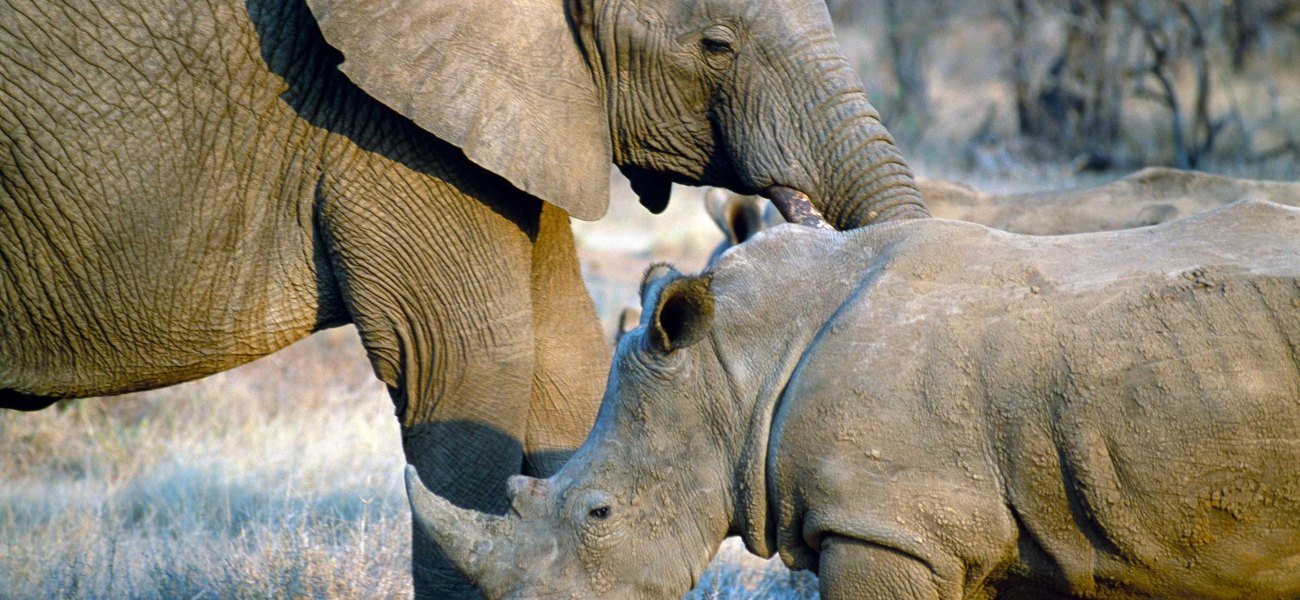 Ο ρινόκερος φαίνεται να είναι επιφυλακτικός, αλλά κάποια στιγμή κάνει την κίνησή του. Ο ελέφαντας, τότε, πιάνει ξανά το κλαδί και αυτήν τη φορά το εκσφενδονίζει προς την πλευρά του ρινόκερου, δείχνοντάς του «ποιος είναι το αφεντικό». Το πανέξυπνο κόλπο έπιασε και ο ρινόκερος έφυγε τρέχοντας.