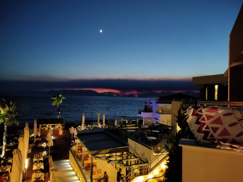 Την ίδια ώρα, σοκαριστικές είναι και οι φωτογραφίες που ανάρτησαν λουόμενοι σε παραλία της Μάνης, στην σελίδα του meteo στο Facebook, και δείχνουν τους πυκνούς καπνούς να έχουν κρύψει τον ήλιο.