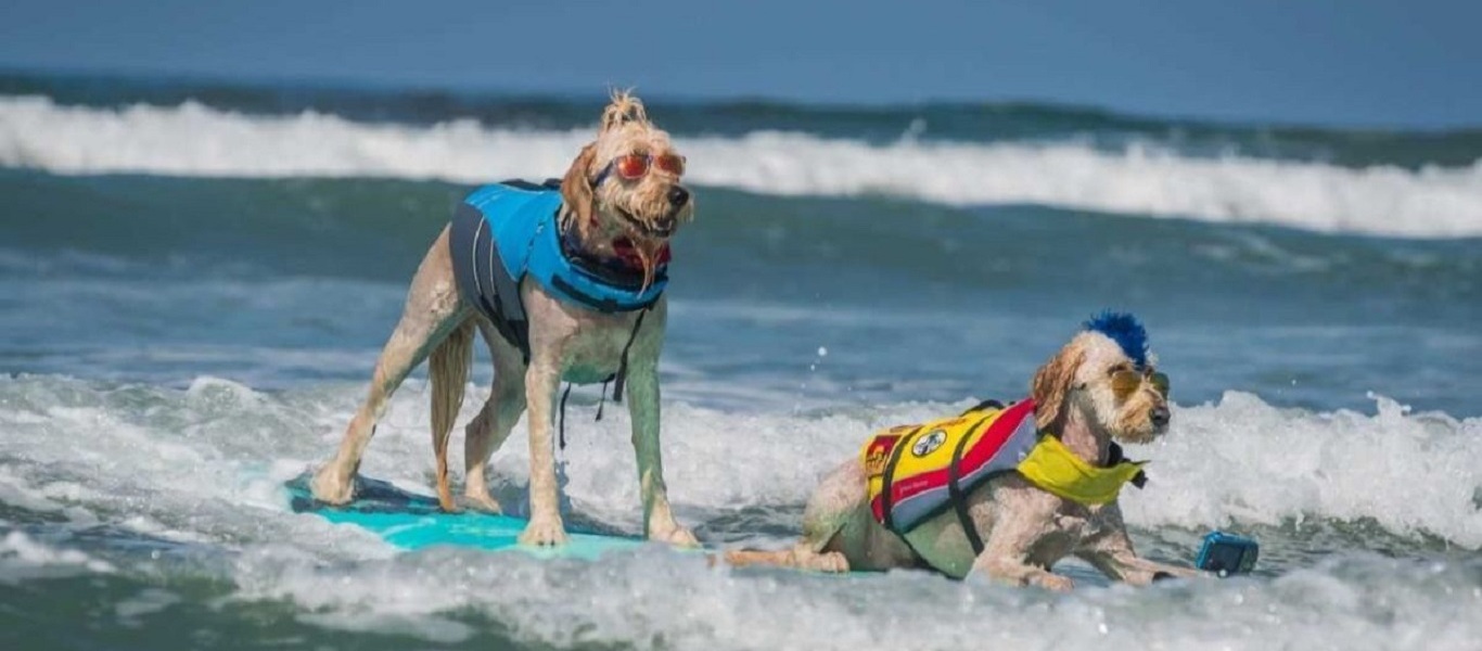 Ο ετήσιος αγώνας σέρφινγκ για σκύλους δεν θα διεξαχθεί φέτος σε κάποια παραλία, αφού ο ιός COVID-19 «παραμονεύει». Οι διοργανωτές αποφάσισαν, όμως, να μην τον ακυρώσουν. Τα αφεντικά των σκυλιών-σέρφερ καλούνται να καταγράψουν τις επιδόσεις σε βίντεο και να τα στείλουν στην επιτροπή, η οποία θα ανακοινώσει διαδικτυακά τους νικητές.