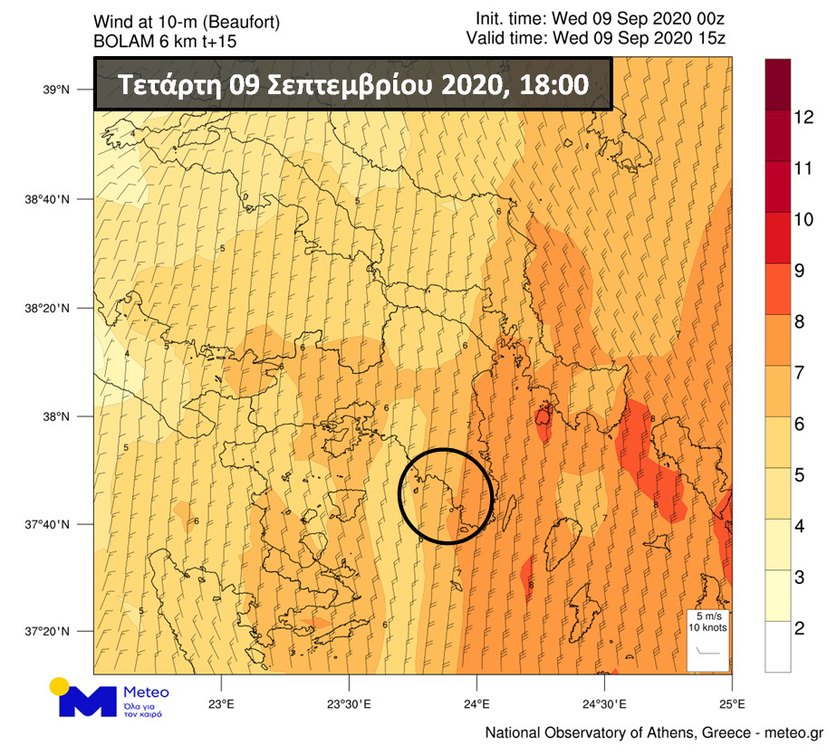 Οι βόρειοι άνεμοι που πνέουν στην περιοχή αναμένεται να διατηρηθούν κατά τις επόμενες ώρες στα 5 έως 7 μποφόρ, με κατά τόπους ισχυρότερες ριπές. Στους σχετικούς χάρτες παρουσιάζεται το πεδίο των ανέμων στην Αττική, σύμφωνα με τις τελευταίες εκτιμήσεις του μοντέλου υψηλής ανάλυσης BOLAM του Εθνικού Αστεροσκοπείου Αθηνών/meteo.gr: