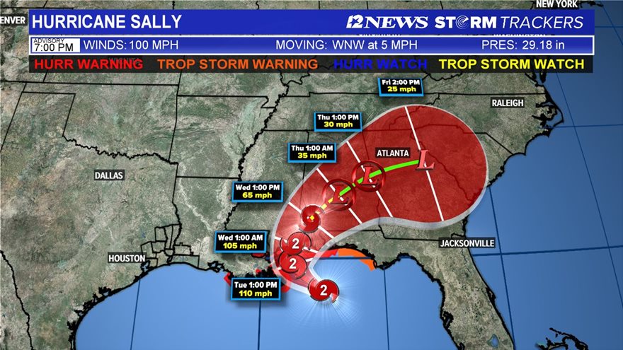 Ο Σάλι αναβαθμίστηκε σε κατηγορία 2 και αναμένεται τις επόμενες ώρες να πλήξει τις νοτιοανατολικές ΗΠΑ, όπως αναφέρεται και στο τελευταίο δελτίο του Εθνικού Κέντρου Κυκλώνων.