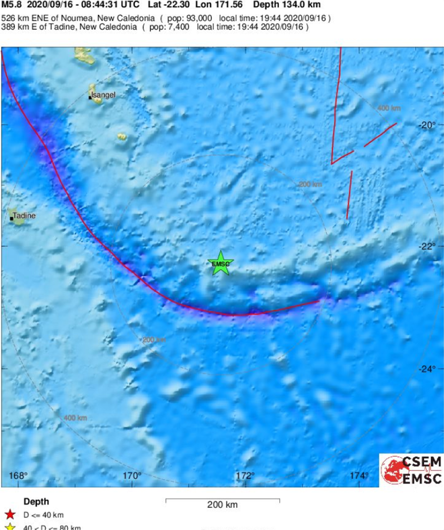 Ισχυρή σεισμική δόνηση μεγέθους 5,8 βαθμών της κλίμακας Ρίχτερ σημειώθηκε στα νησιά Λόγιαλτι στη Νέα Καληδονία το μεσημέρι της Τετάρτης.