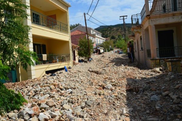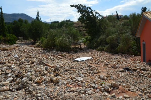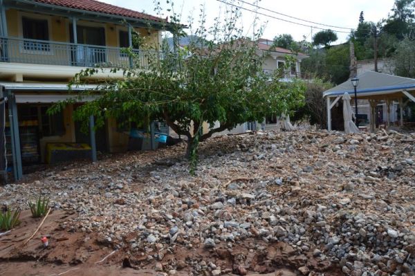 Η παραλία της Άσσου, δεν υφίσταται καθώς τόνοι λάσπης και μπάζα μεταφέρθηκαν σε ένα ορμητικό χείμαρρο από ρέμα της περιοχής.