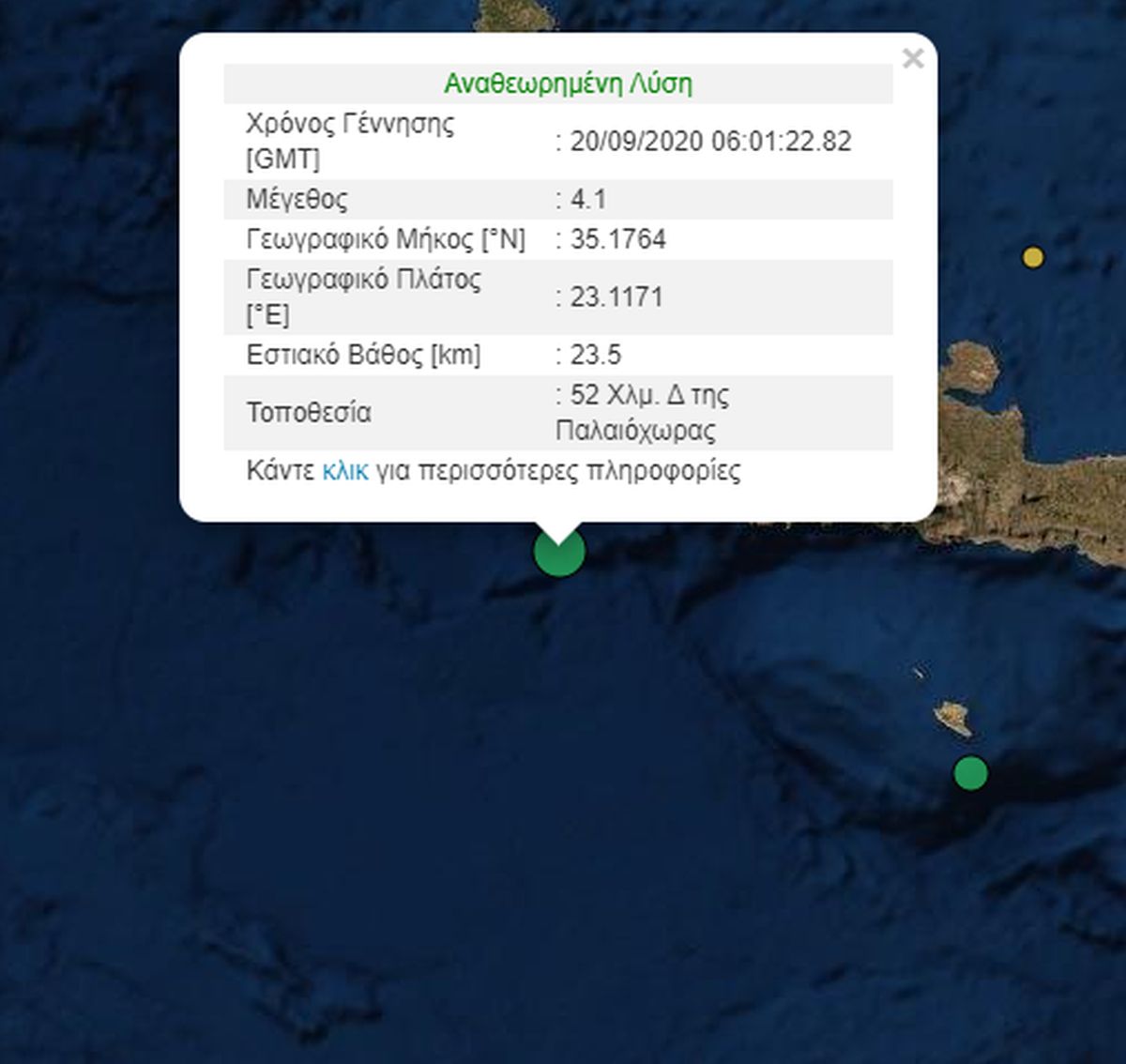 Μισή ώρα νωρίτερα, προηγήθηκε άλλος σεισμός στην Κρήτη μεγέθους 4,1 Ρίχτερ.