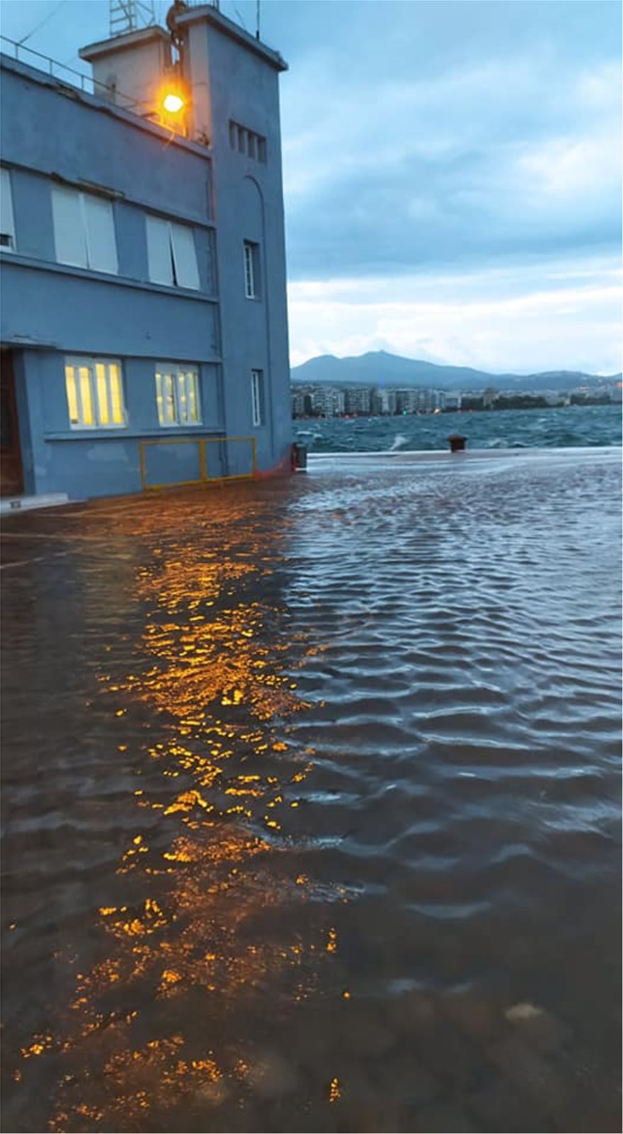 Η θάλασσα βγήκε στη στεριά εξαιτίας των ισχυρών μποφόρ που έπνεαν στον Θερμαϊκό, με αποτέλεσμα να πλημμυρίσει η παραλιακή λεωφόρος της πόλης, δυσχεραίνοντας την κυκλοφορία των αυτοκινήτων με τους οδηγούς να κινούνται με ιδιαίτερη προσοχή.