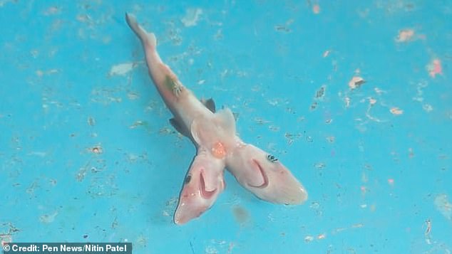 Έναν σπάνιο μεταλλαγμένο καρχαρία με ένα σώμα και δυο κεφάλια ψάρεψε ο Νιτίν Πατίλ – Ινδός ψαράς – στην περιοχή Μαχαράστρα στον Ινδικό Ωκεανό.