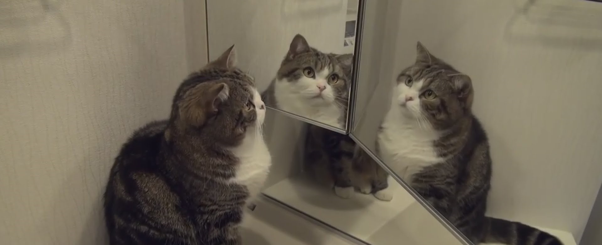 Η απίθανη αυτή τριχόμπαλα μόλις βλέπει το καθρέφτισμά της νομίζει ότι πρόκειται για άλλη γάτα.
