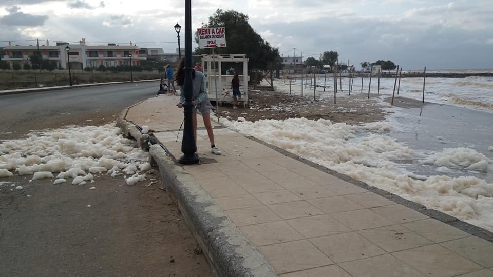 Σε αρκετές παραλίες εμφανίστηκε αφρός, που έχει ξεβγάλει η θάλασσα. Χαρακτηριστικές είναι οι φωτογραφίες στην περιοχή της Αναλήψεως Χερσονήσου, που ανέβηκαν στην ιστοσελίδα «Μετεωκρήτες».