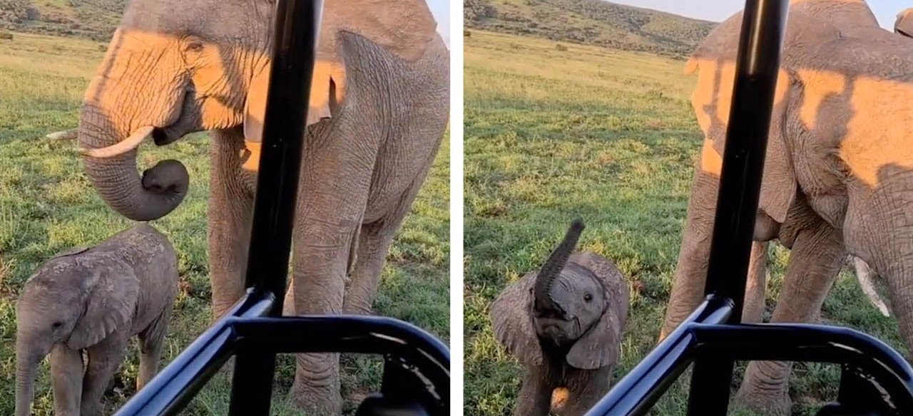 Ένα πανέμορφο περιστατικό συνέβη στο πάρκο άγριας ζωής Shamwari Private Game Reserve, στη Νότια Αφρική, καθώς ένα μωρό ελεφαντάκι χαιρέτησε με την προβοσκίδα του τουρίστες σε σαφάρι.