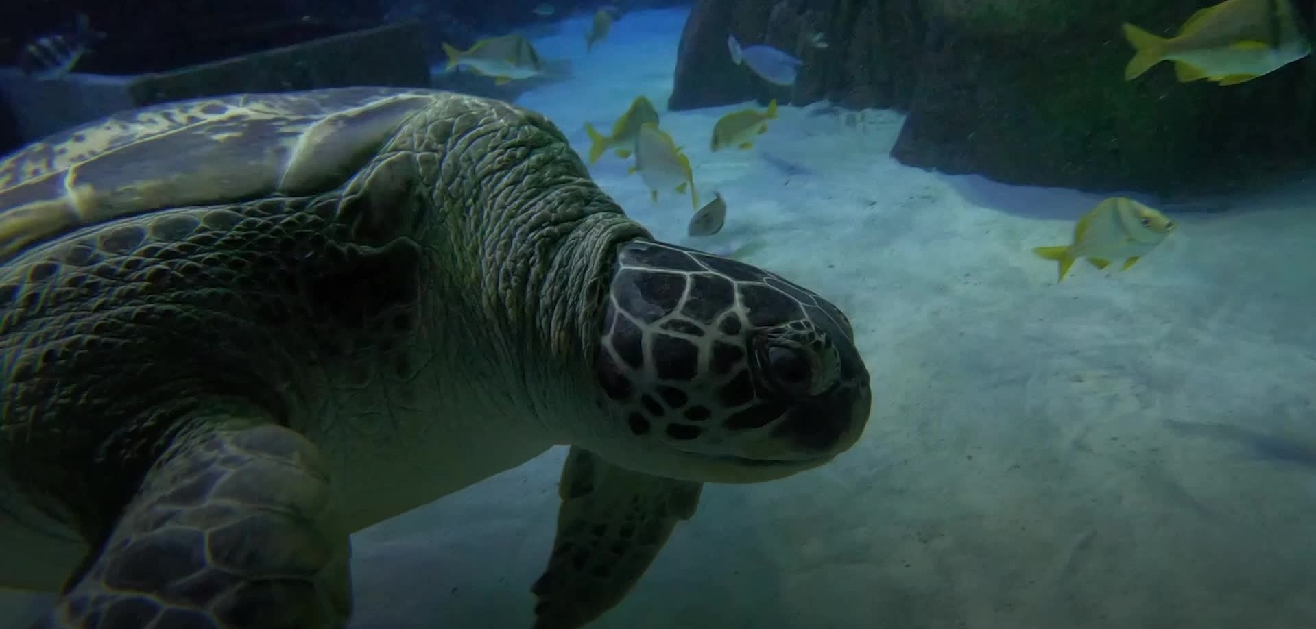 Μια πράσινη θαλάσσια χελώνα ζει στο ενυδρείο Manchester SeaLife Aquarium στο Μάντσεστερ και έχει μπει σε ειδικό πρόγραμμα δίαιτας, λόγω των έξτρα κιλών που πήρε όσο το πάρκο θαλάσσιας ζωής παρέμεινε κλειστό στην καραντίνα.