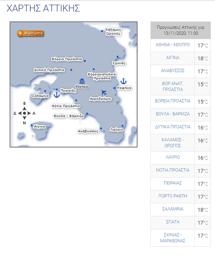 Η θερμοκρασία στο κέντρο της Αθήνας θα αγγίξει σήμερα στις 2 το μεσημέρι τους 19 βαθμούς Κελσίου.