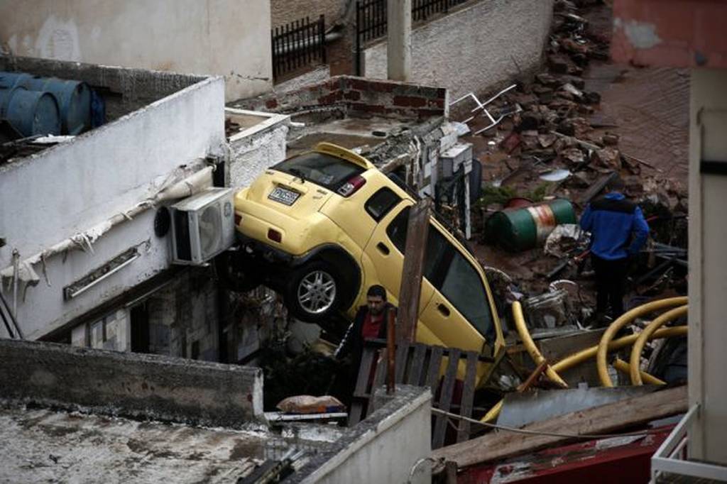 Με το πρώτο φως της ημέρας, αναδεικνύεται το πραγματικό μέγεθος της καταστροφής: Σπίτια και καταστήματα, πλημμυρισμένα, αυτοκίνητα «κουβάρι» και σμπαραλιασμένα πάνω σε τοίχους και μια τεράστια έκταση, το μεγαλύτερο μέρος του πολεοδομικού συγκροτήματος της Μάνδρας να έχει «θαφτεί» κάτω από τα νερά και τη λάσπη.