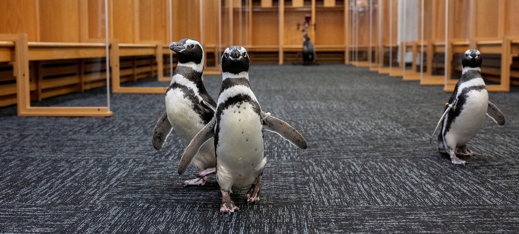 Οι πιγκουΐνοι περιηγήθηκαν σε όλους τους χώρους, καθώς περπατούσαν στα αποδυτήρια, στον αγωνιστικό χώρο και γνώρισαν διαφορετικούς νέους ήχους, μυρωδιές και αισθήσεις, όπως ανέφερε το ενυδρείο.