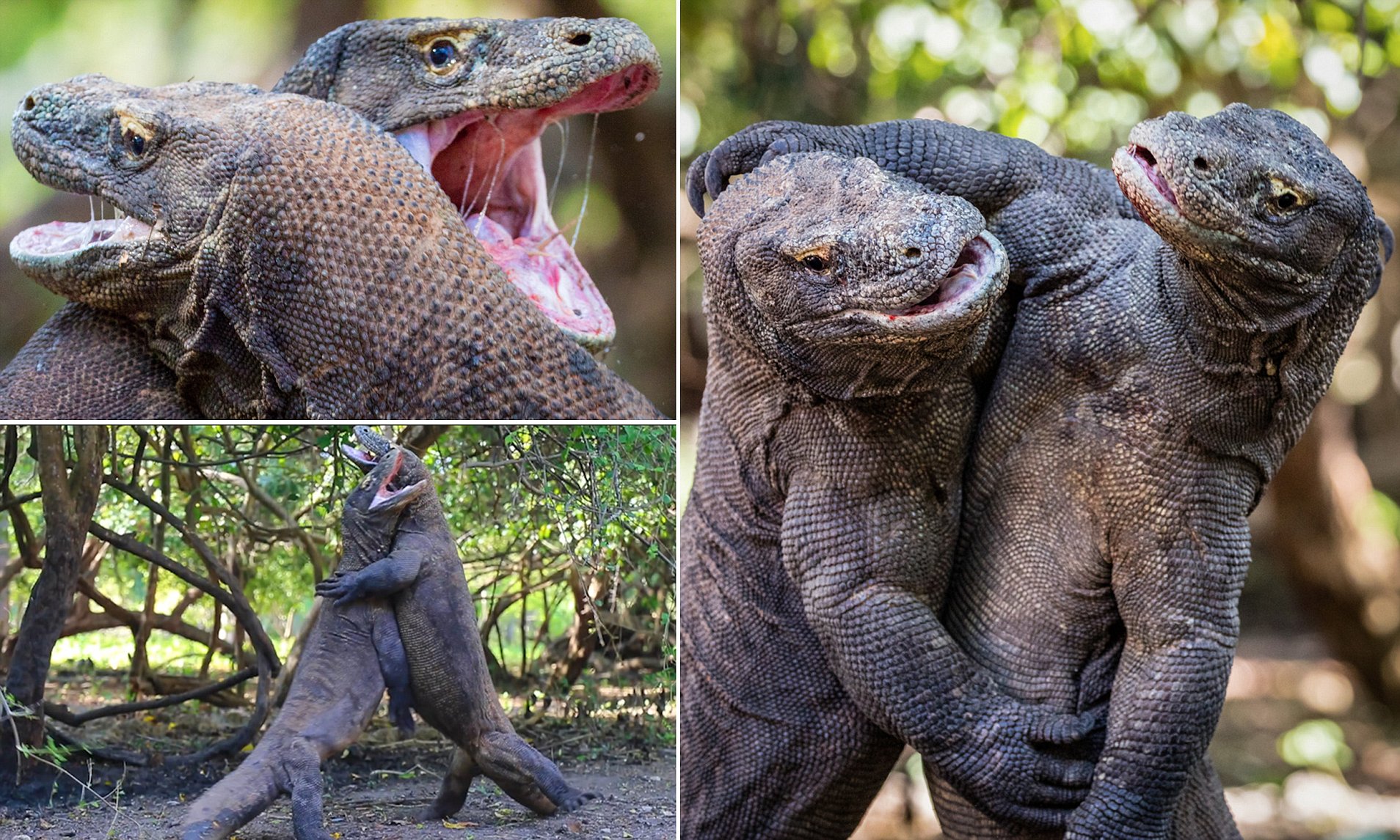 Δυο σαύρες monitor έχουν πιαστεί στα χέρια και παλεύουν σαν επαγγελματίες παλαιστές. Η μονομαχία προκάλεσε πανικό στην οικογένεια, ενώ ο σκύλος του σπιτιού άρχισε να γαβγίζει φοβισμένος, στην επαρχία Σουρίν, στη Βόρεια Ταϊλάνδη.
