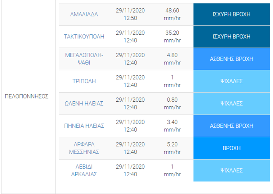 Σύμφωνα με τα προγνωστικά μοντέλα του meteo.gr, αυτή την ώρα βρέχει καταρρακτωδώς στην Ιθάκη και σε περιοχές του Ρεθύμνου. Ισχυρές βροχές εκδηλώνονται και στην Πελοπόννησο, στην Αμαλιάδα.
