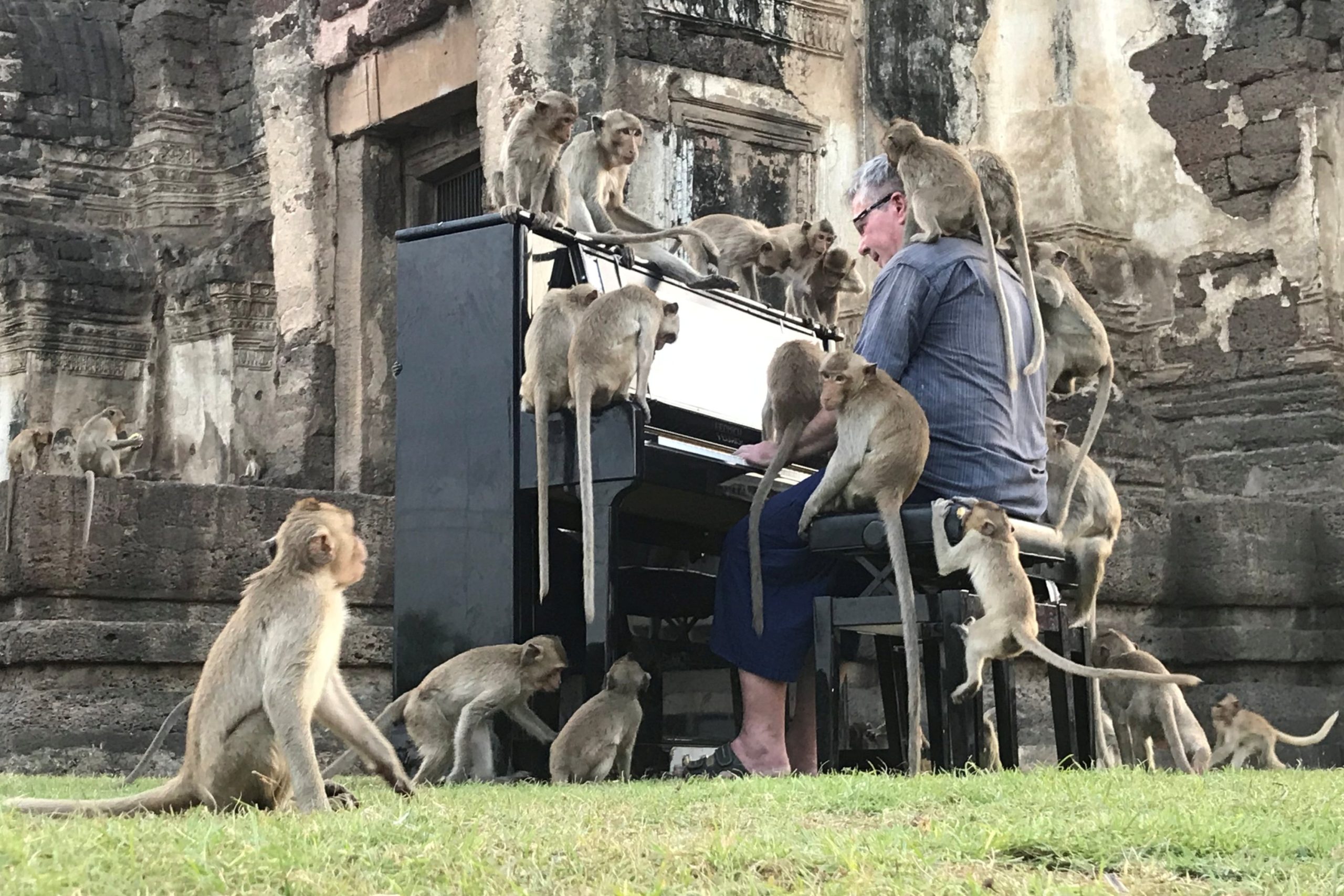 Ήταν εκείνη τη στιγμή που άρχισε να παίζει και για τυφλά ζώα. Ο 59χρονος ελπίζει τώρα να χρησιμοποιήσει τα ταλέντα του για να βοηθήσει τους πιθήκους της Ταϊλάνδης.