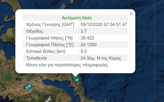 Πιο συγκεκριμένα είχε εστιακό βάθος 5 χιλιόμετρα έγινε πριν από λίγο αισθητός στην Εύβοια. Το επίκεντρο είναι 24 χιλιόμετρα νότια της Κύμης σύμφωνα με το Γεωδυναμικό Ινστιτούτο.