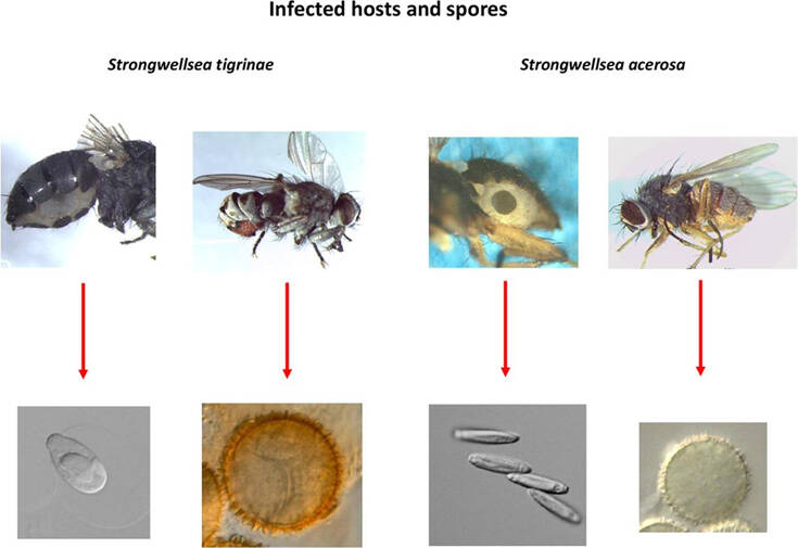 Συγκεκριμένα τα παράσιτα Strongwellsea acerosa και Strongwellsea tigrinae, προσβάλλουν ενήλικες μύγες, οι οποίες απομένουν με τεράστιες τρύπες στην κοιλιά τους. Και όλα αυτά ενώ παραμένουν ζωντανές.