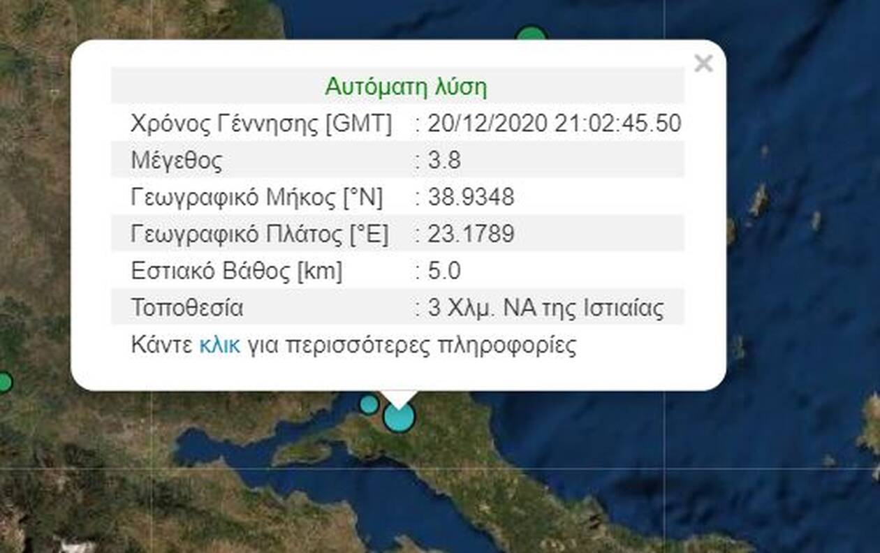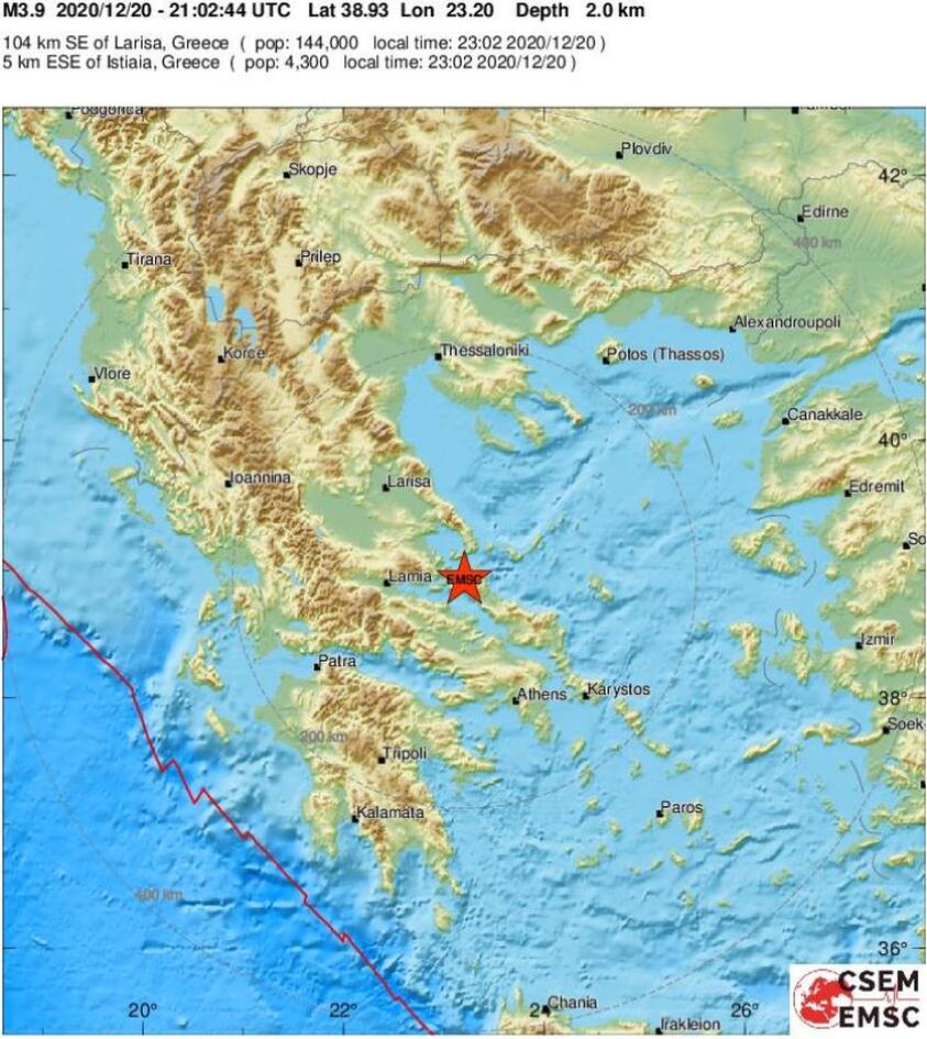 Σεισμική δόνηση σημειώθηκε στις 23:02 την Κυριακή (20/12) στην Ιστιάια Ευβοίας