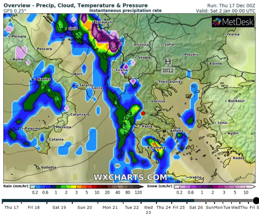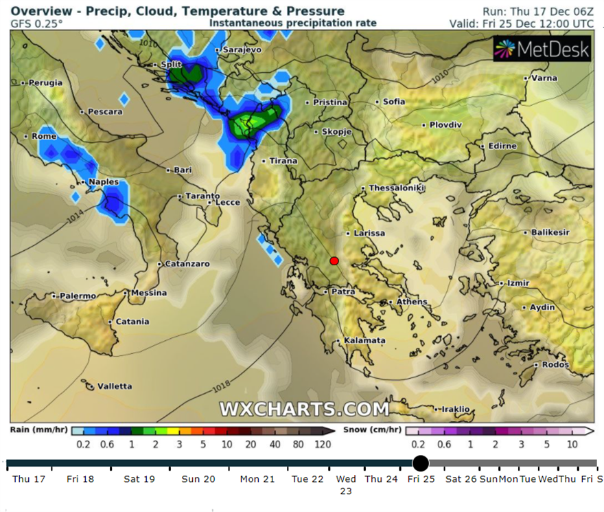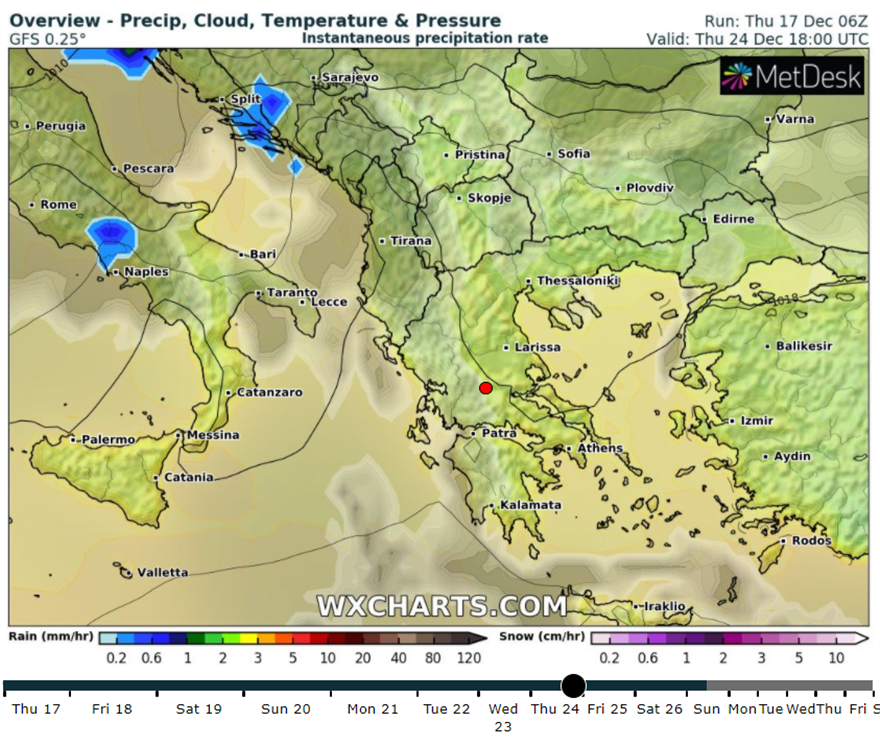 Δείτε στον χάρτη που ακολουθεί την εκτίμηση του καιρού για τις ημέρες πριν τα Χριστούγεννα και την Πρωτοχρονιά