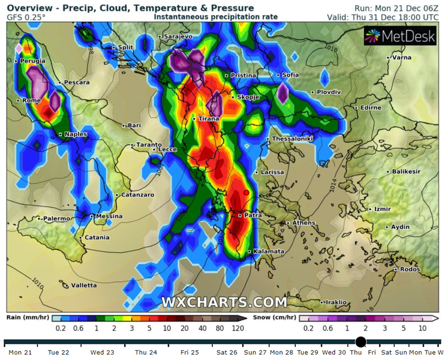Κατά το τέλος του Δεκεμβρίου ωστόσο, αρκετά συχνά, ο καιρός παρουσιάζει σημαντικές μεταβολές και εκδηλώνονται κακοκαιρίες. Κάτι ανάλογο αναμένεται να συμβεί και το διήμερο Σάββατο 26/12 – Κυριακή 27/12, σύμφωνα πάντα με τα έως τώρα διαθέσιμα προγνωστικά δεδομένα.