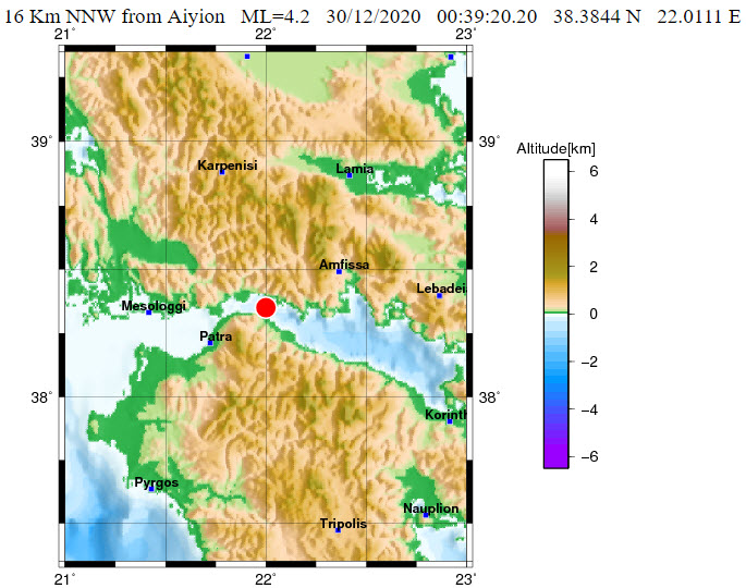 H αναθεωρημένη λύση του Γεωδυναμικού Ινστιτούτου του Αστεροσκοπείου Αθηνών δίνει το σεισμό στα 4,2 Ρίχτερ, με εστιακό βάθος τα 9,7 χλμ., και επίκεντρο τα 17 χλμ. βόρεια-βορειοδυτικά του Αιγίου.