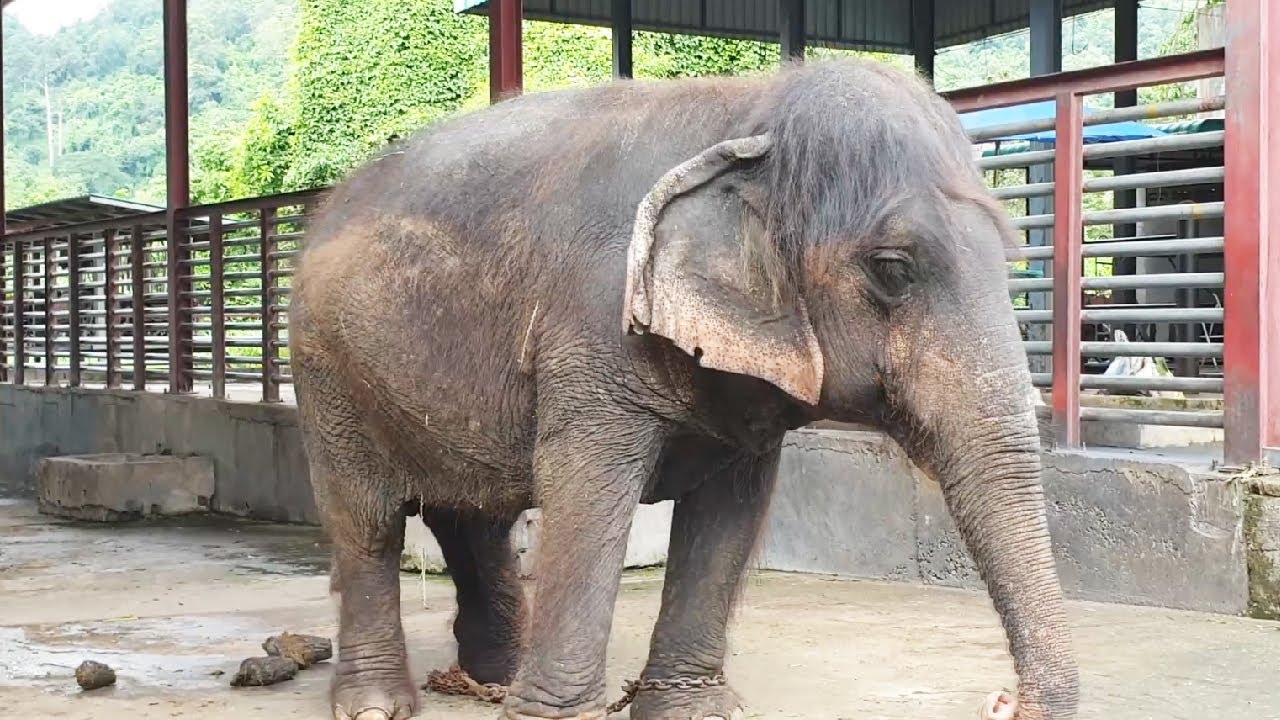 Μια 70χρονη γιαγιά-ελεφαντίνα, άρχισε να βγάζει μαλλιά αφότου μεταφέρθηκε στο καταφύγιο ελεφάντων στο Τσιανγκ Μάι, της Ταϊλάνδης.
