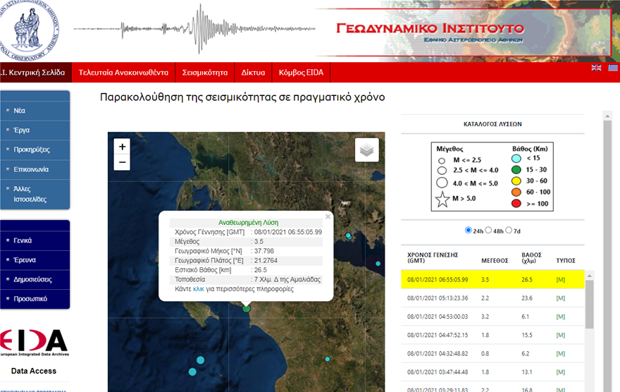 Δείτε στον χάρτη που ακολουθεί πώς κατέγραψε το Γεωδυναμικό Ινστιτούτο τη σεισμική δόνηση
