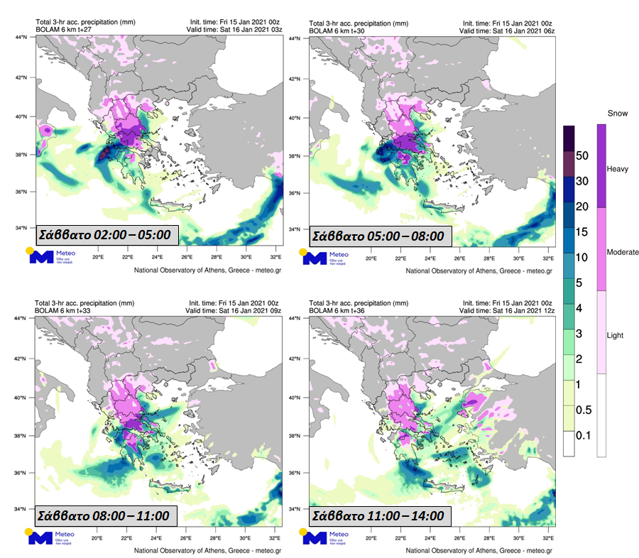 Χιονοπτώσεις αναμένονται αρχικά στα ορεινά της κεντρικής και βόρειας ηπειρωτικής χώρας οι οποίες έως το πρωί θα επεκταθούν σε όλα τα κεντρικά και βόρεια ηπειρωτικά, στη Βορειοανατολική Πελοπόννησο καθώς και στα ορεινά της υπόλοιπης χώρας. Βροχοπτώσεις αναμένονται στις υπόλοιπες περιοχές. Τα φαινόμενα θα εξασθενήσουν σταδιακά προς το τέλος του εικοσιτετραώρου.
