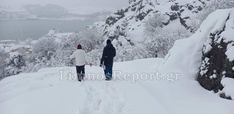 Εικόνες από την χιονισμένη Λήμνο λόγω της κακοκαιρίας «Λέανδρος»