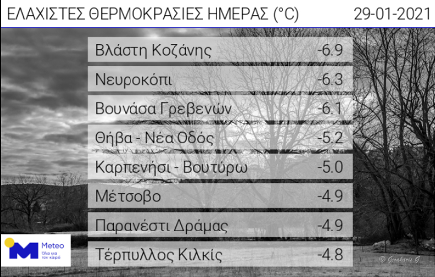 Στους -6,9 βαθμούς Κελσίου έφτασε η θερμοκρασία στη Βλάστη Κοζάνης το πρωί της Παρασκευής 29/1.