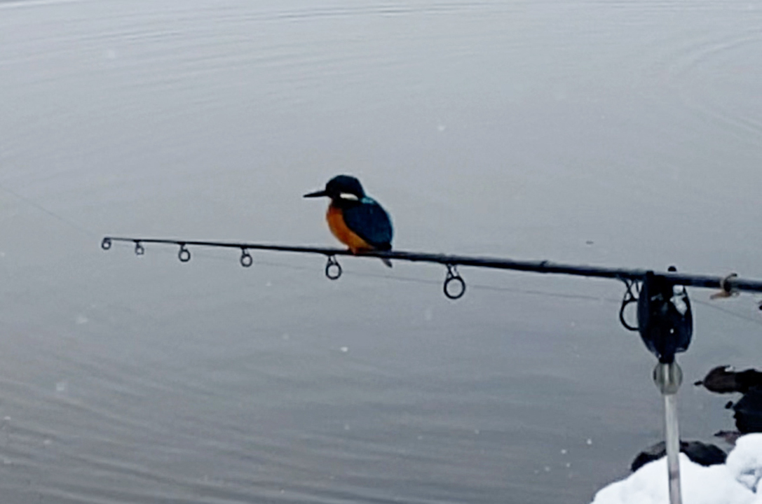 Μια μικροσκοπική αλκυόνη βουτά με εντυπωσιακή μαεστρία σε μια παγωμένη λίμνη και πιάνει ψάρι στα νερά. Στη συνέχεια το μικροσκοπικό ψαροπούλι πετά σε ένα καλάμι ψαρέματος που είναι ακουμπισμένο στην όχθη και απολαμβάνει το ψαράκι που μόλις έπιασε, λες και κάθεται σε κλαδί.