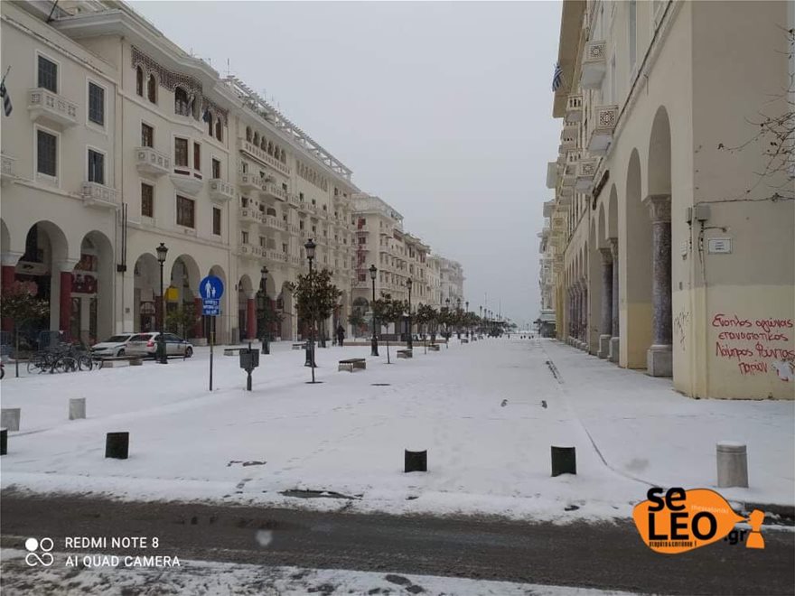 Στα λευκά «ντύθηκε» η Θεσσαλονίκη, με την κακοκαιρία «Μήδεια» να δείχνει για τα καλά τα «δόντια» της, καθώς σημειώθηκε έντονη χιονόπτωση στην ευρύτερη περιοχή.