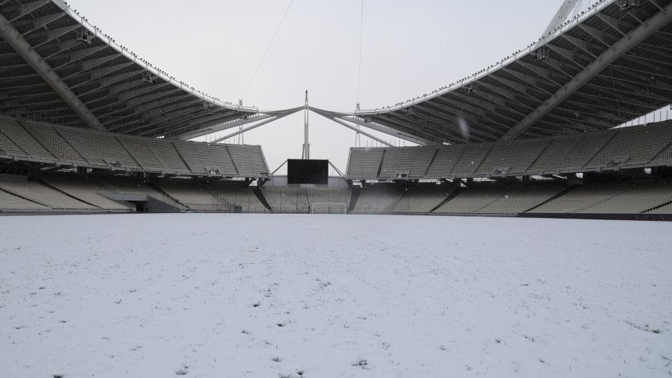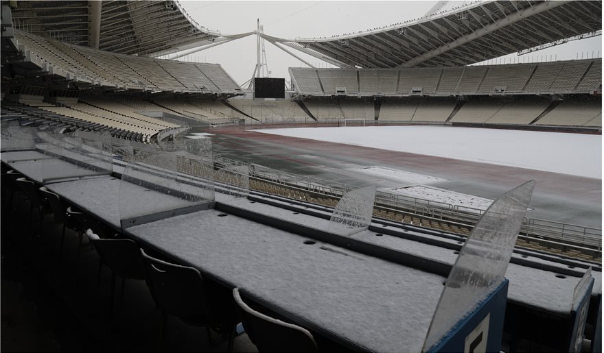 «Ντύθηκε» στα λευκά το Ολυμπιακό Στάδιο – Το «έστρωσε» στον αγωνιστικό χώρο (φωτο)