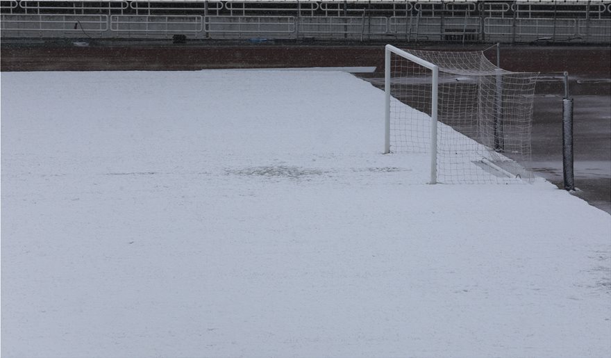 Όπως θα δείτε στις φωτογραφίες που ακολουθούν, το χιόνι έχει καλύψει για τα καλά τον αγωνιστικό χώρο στο γήπεδο ποδοσφαίρου, όπως και τους περιβάλλοντες χώρους του γηπέδου.