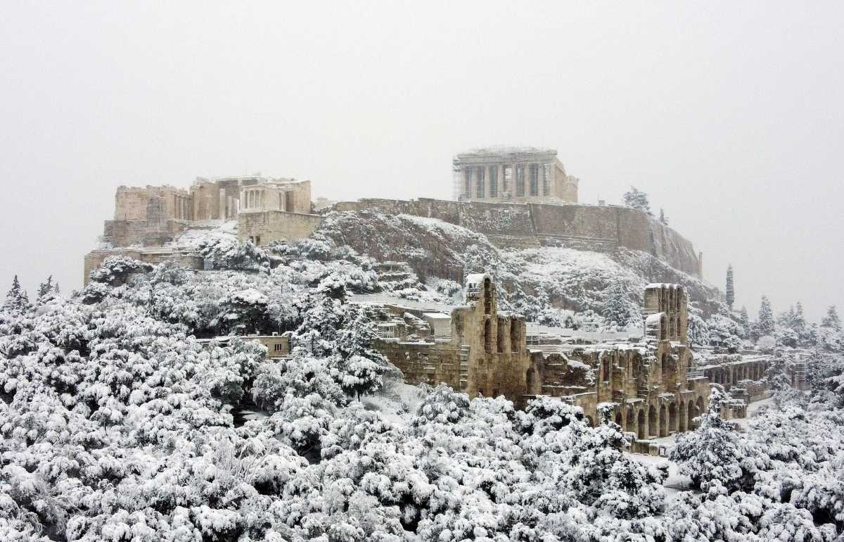 Η «πρωταγωνίστρια» της Αθήνας, η Ακρόπολη, «ντύθηκε» στα λευκά και είναι εντυπωσιακή.