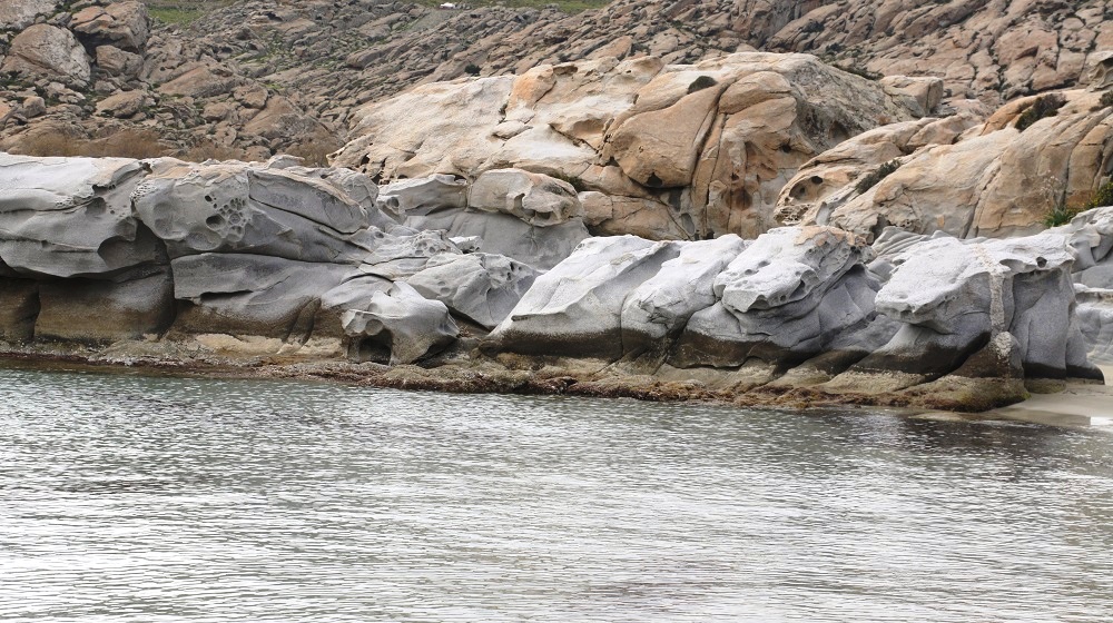 Στην παραλία Κολυμπήθρες της Πάρου το φαινόμενο της άμπωτης απογύμνωσε τα βράχια της θάλασσας.
